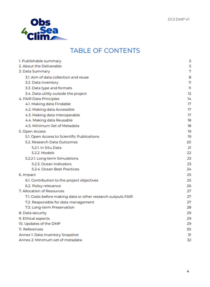 ObsSea4Clim collects and uses various observational and numerical data across the project work packages, throughout the project duration. The project brings together multiple European and international actors, and the data will be shared between them. Therefore, having a clear and structured data management plan is essential for the success of ObsSea4Clim.