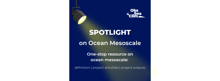 ObsSea4Clim Spotlight on Ocean Mesoscale gives a quick glimpse into the science, challenges, and project activities related to studying ocean mesoscale dynamics (e.g. eddies, fronts, and filaments).